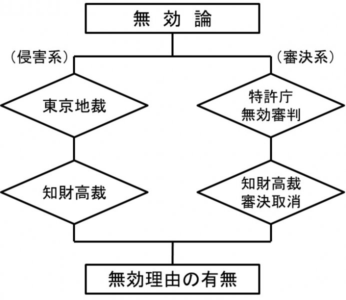 ら特許無効審判が請求されますと、侵害裁判所ルートの「侵害系」と特許庁審判ルートの「審決系」の2系列