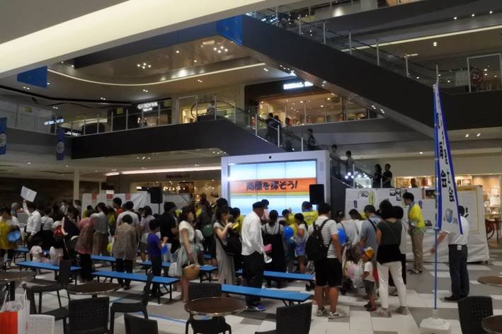 当日、外は曇り空でしたが、ららぽーと内のイベント会場には、約40名の弁理士が“はっぴ姿“で集合しました。