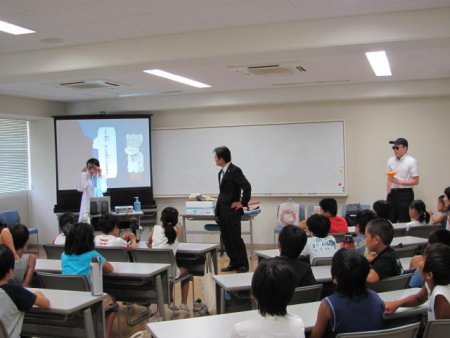 そこで、知財授業と理科工作の二部構成は今までと同じとしましたが今回は内容を見直しました。知財授業としては、電子紙芝居を用いた「君も今日からエジソン」(70分)を実施し、理科工作としては、「光通信を利用したメロディ装置」(90分)を実施しました。