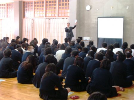 同校での紛争劇は、昨年に引き続いてのことである。昨年は非常に好評であったため、今年も是非とのことである。しかし、同じ学校で二回目となると、担任の先生にはインパクトが薄れ、各俳優の交代で印象が変わるのではないかと色々プレッシャーもあった。しかも、台本修正等が遅れ、練習時間の調整が難しく合計2度の練習で本番を迎えた。しかし、本番では随所にアドリブも入り、報告者(裏方担当)は感心することしきりであった。