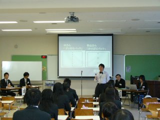 50分間という短い時間であったため、知的財産権の基礎をごく簡単に説明し、高校生が知っていそうな製品、ブランドなど複数を実例としてピックアップして紹介しました。特に、有名タレントグループ名の商標登録例やTV番組のヒーローの意匠登録例など興味があったようです。また、知的財産権で保護された商品等の取り扱いについて罰則規定などを含めて簡単に説明しました。なお、一緒に聴講されていた先生方からも著作権などについて質問などありました。